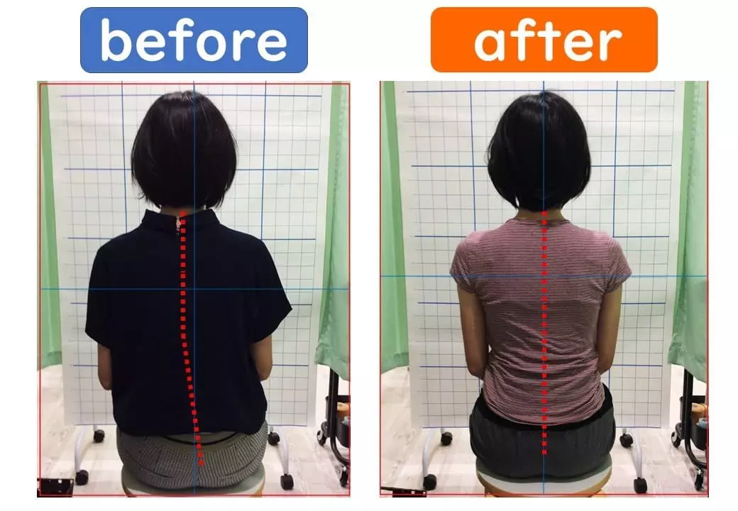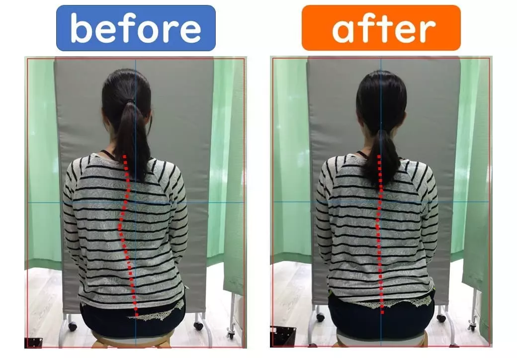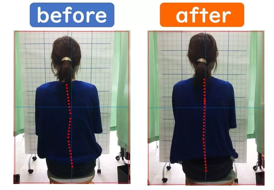 1回目の施術でもこれだけきれいに身体が中心に戻っているため、6回程度の施術を行うと施術後の状態が維持できるようになります!