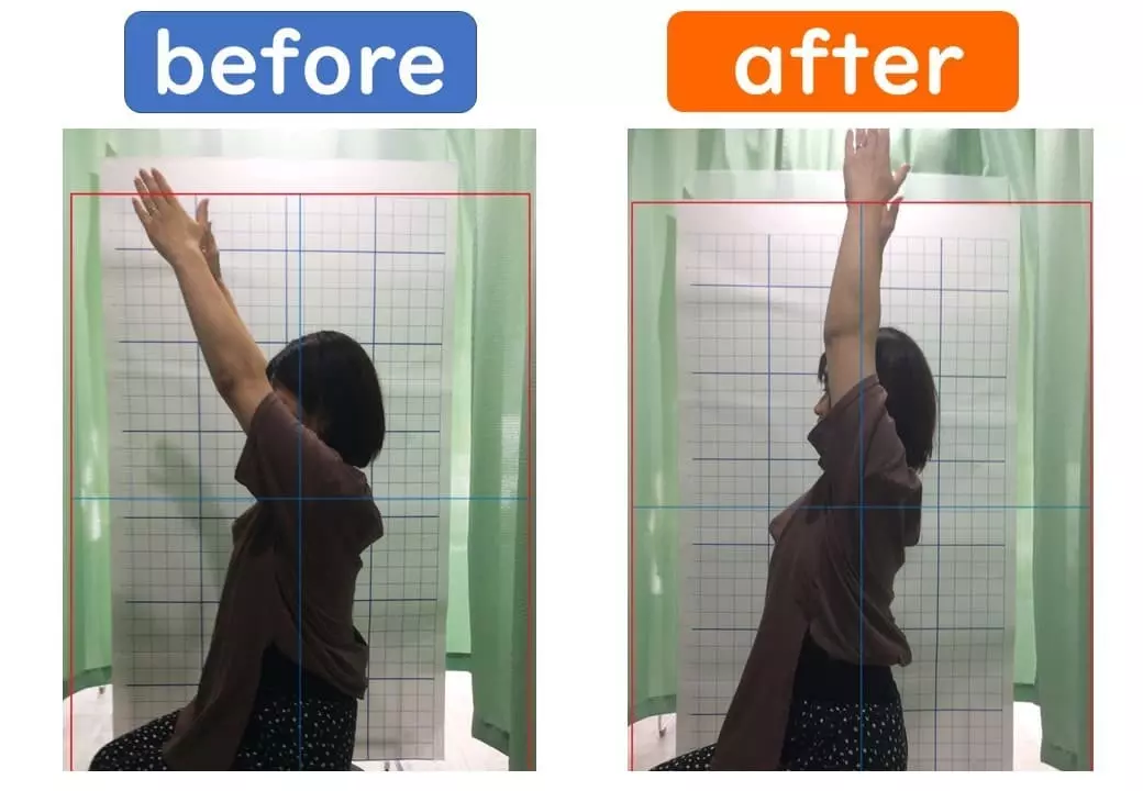 1回の施術でも肩が通常の可動域に改善しているのがわかります。