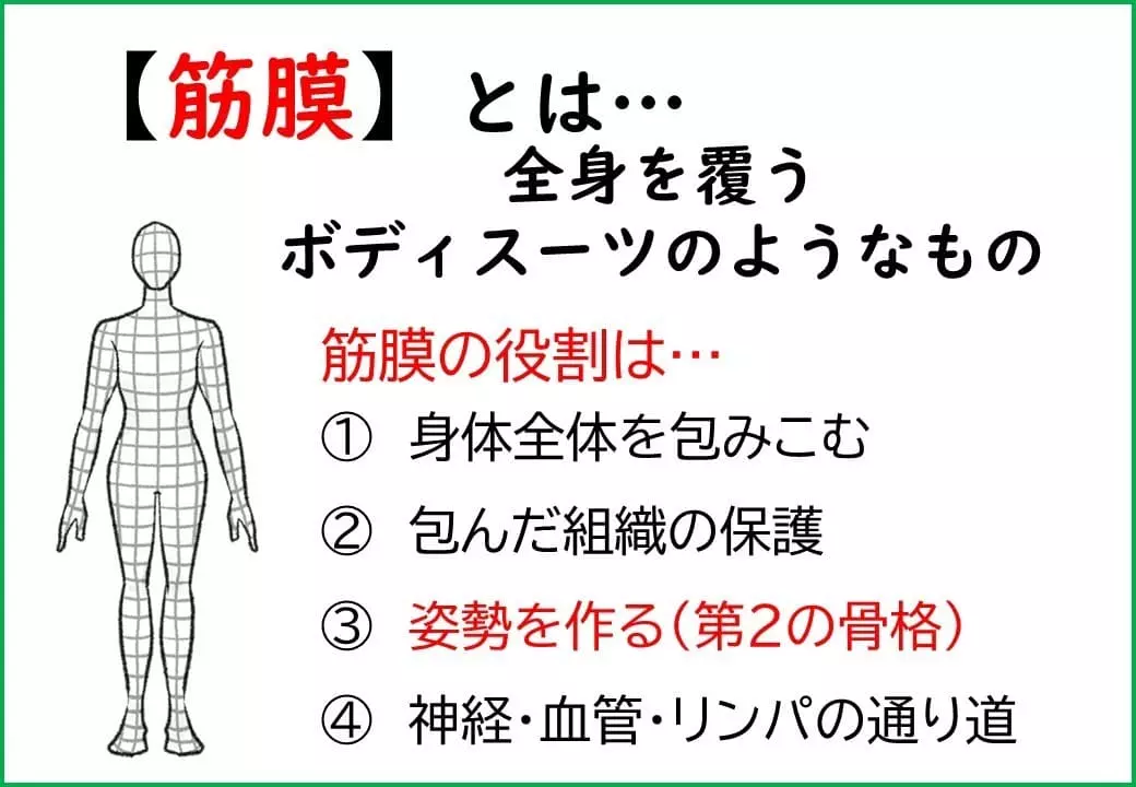 筋膜は第2の骨格ともいわれる身体全体を覆っている膜です。
