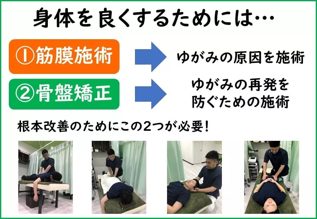 この2つの施術を行うことで、身体の痛みや不調を根本から改善していきます。