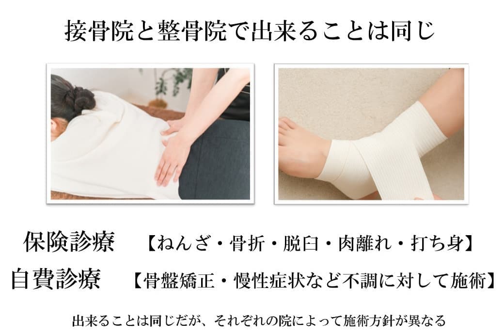 どんな施術をしているかは接骨院や整骨院という名称での違いはなく、